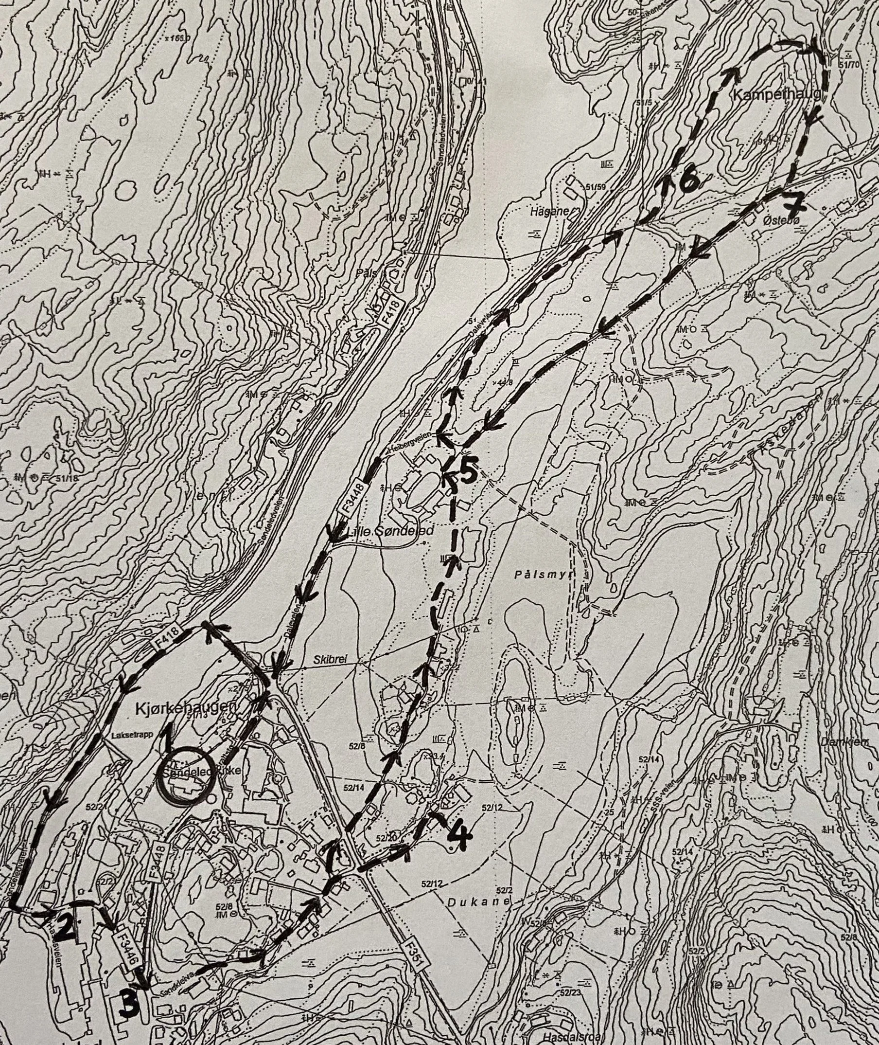 4. Store Søndeled (hovedrast) 5. Heibergveien/Lille Søndeled 6. Fruestien/Kamperhaug